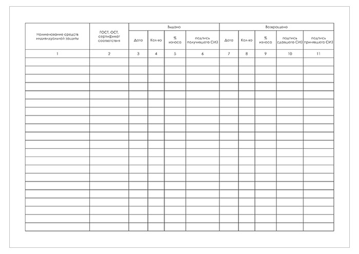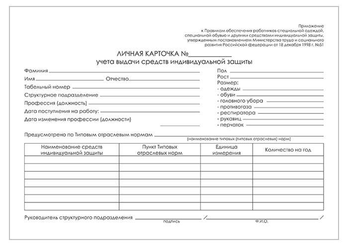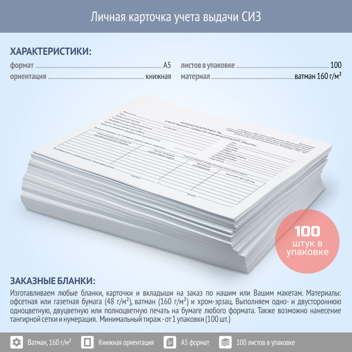 Карточка выдачи СИЗ (приказ Минздравсоцразвития от 01.06.2009 г. №290н, упаковка 100 штук) в Туле купить